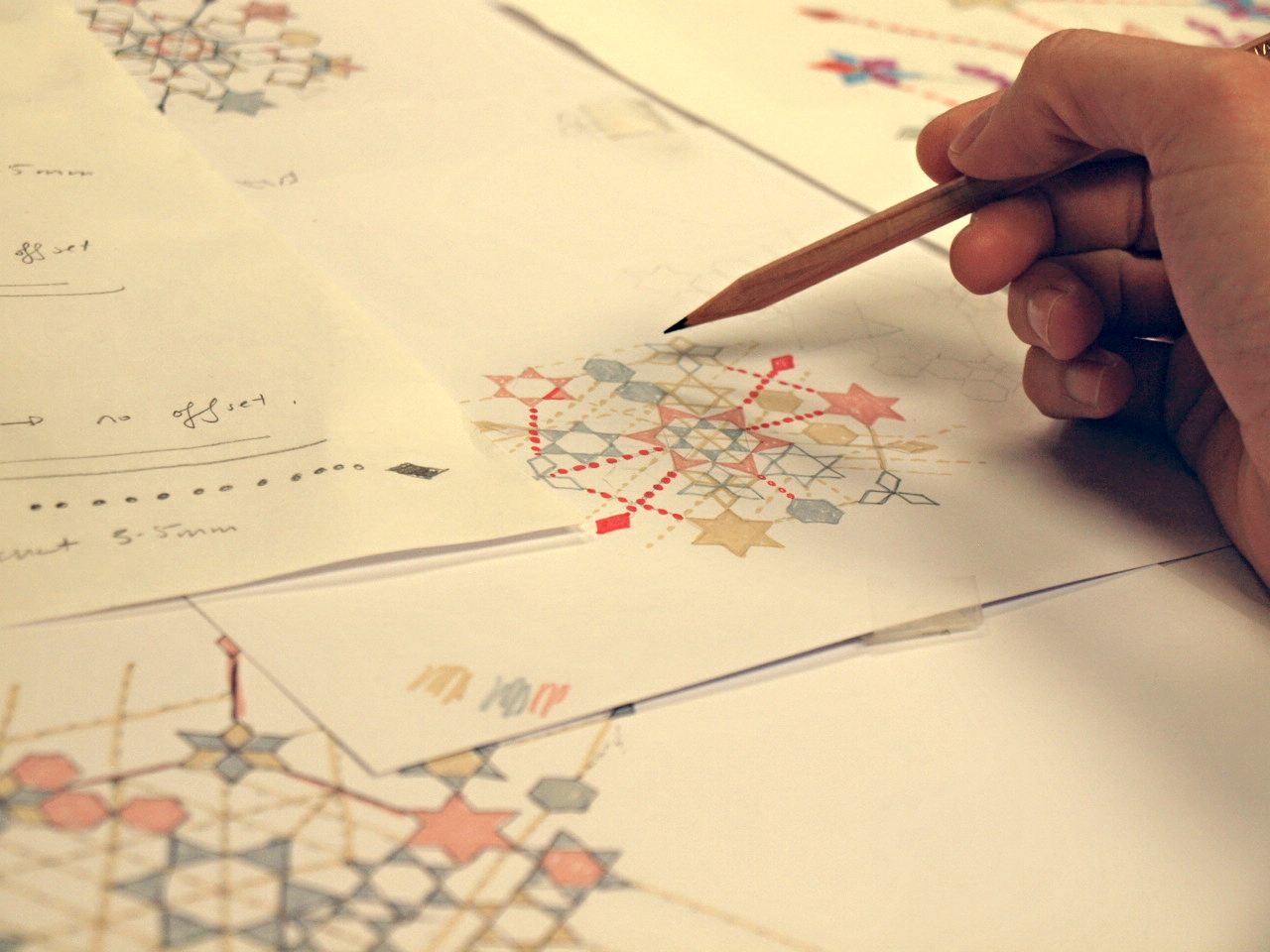 Every design starts with pencil to paper, imagining the placement of threads and fabrics. Once finalized, the drawing is scanned into the computer to use as a backdrop for digitizing. Natalia uses a specialized software to painstakingly place each stitch, one at a time, until the entire artwork is complete.